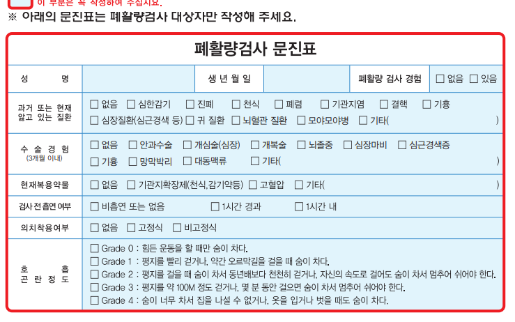 - 분진 작업: 폐 기능 검사