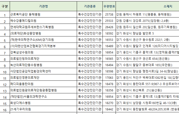 전국 배치전 건강검진 기관 다운받기
