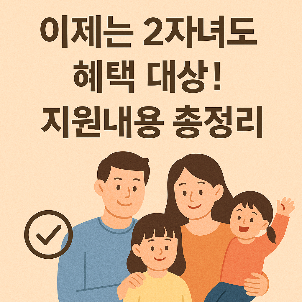2025년 2자녀 다자녀 혜택 최신 정리. 세금·연금·주거·금융·교통·공공요금·문화시설까지 2자녀 가정도 받을 수 있는 전방위 혜택을 한눈에 확인하세요.
