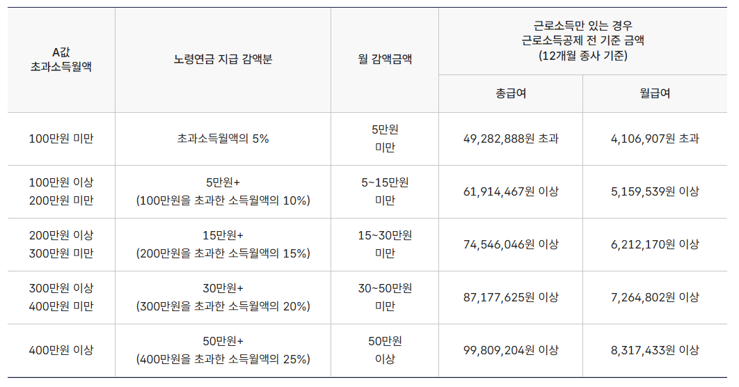 - 감액 기준 적용: 국민연금, 근로소득, 재산 소득이 일정 수준 이상일 경우 일부 삭감