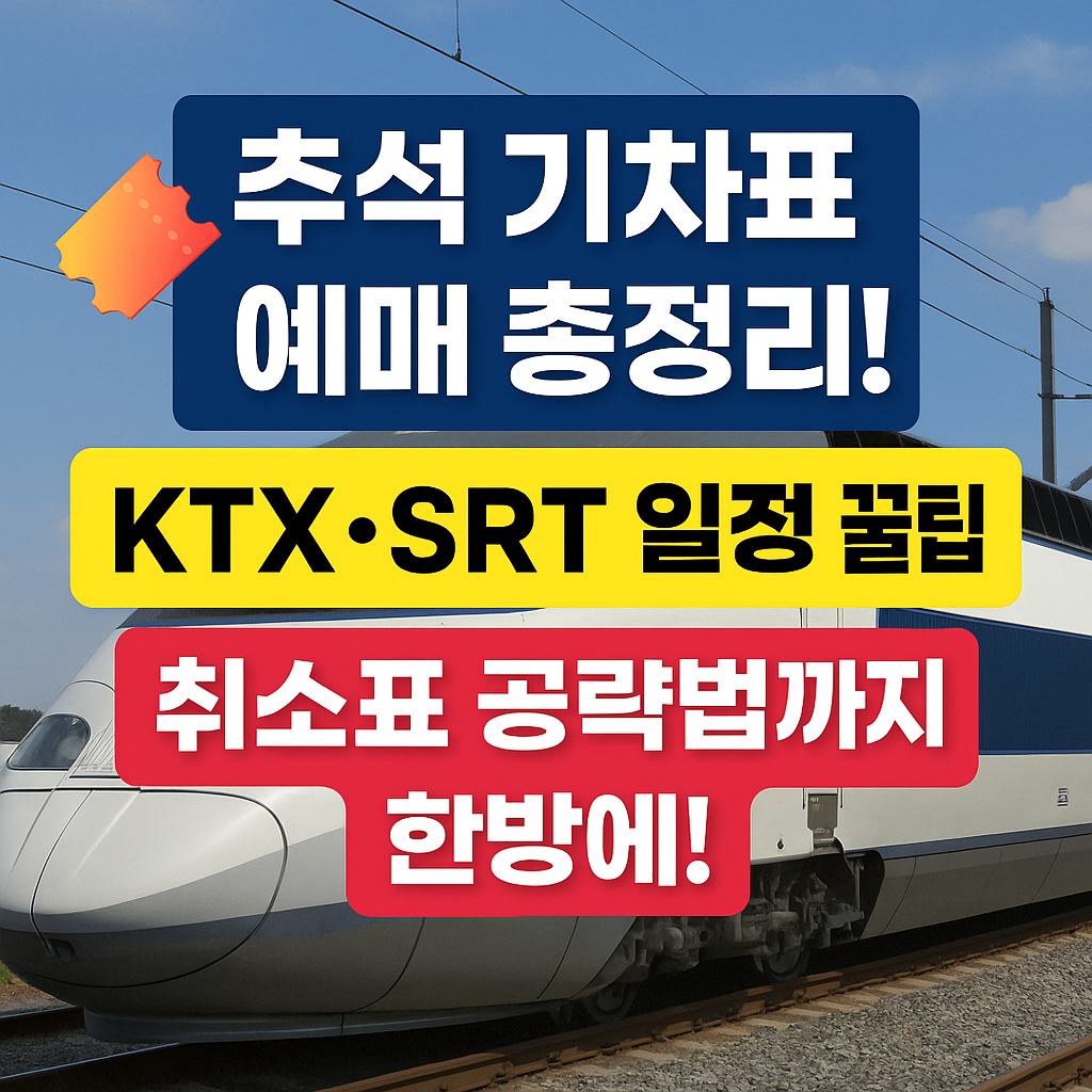 2025 추석 기차표 예매 일정 총정리. 코레일·SRT 예매일, 변경된 일정, 취소표 공략법, 예매 꿀팁·좌석 추천·환불 규정까지 한눈에 확인하세요.